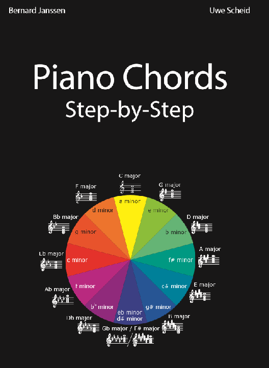 |  | Piano Chords Step by Step by: Bernard Janssen and Uwe Scheid Bernard Janssen with decades of international experience as a pianist, piano teacher and a pianotuner, he knows the difficulties encountered as a beginner playing the piano or keyboard without notes or leadsheets. This book gives you a step by step approach through the key fundamentals that you need in order to play the piano through the knowledge of chords and chords symbols. All chords are shown in every key, shown both as notes and as Keyboard images. The workbook provides both the beginners and the advanced pianist or keyboardist valuable asssitance. Have fun practicing € 28,50 ( Incl. shipping ) Insured international registered letter by airmail . |